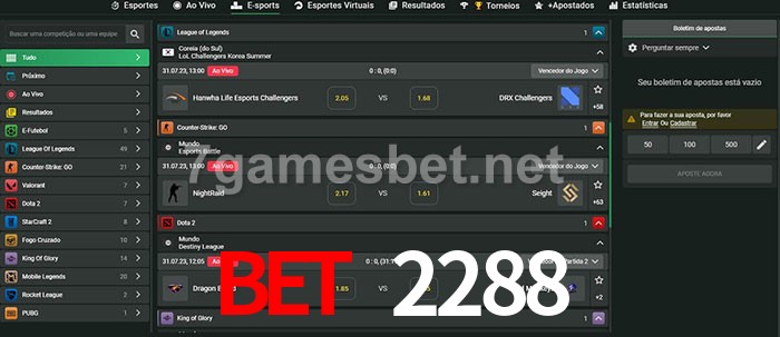 O Bet 2288 oferece uma grande seleção de opções de apostas em e-sports com probabilidades competitivas